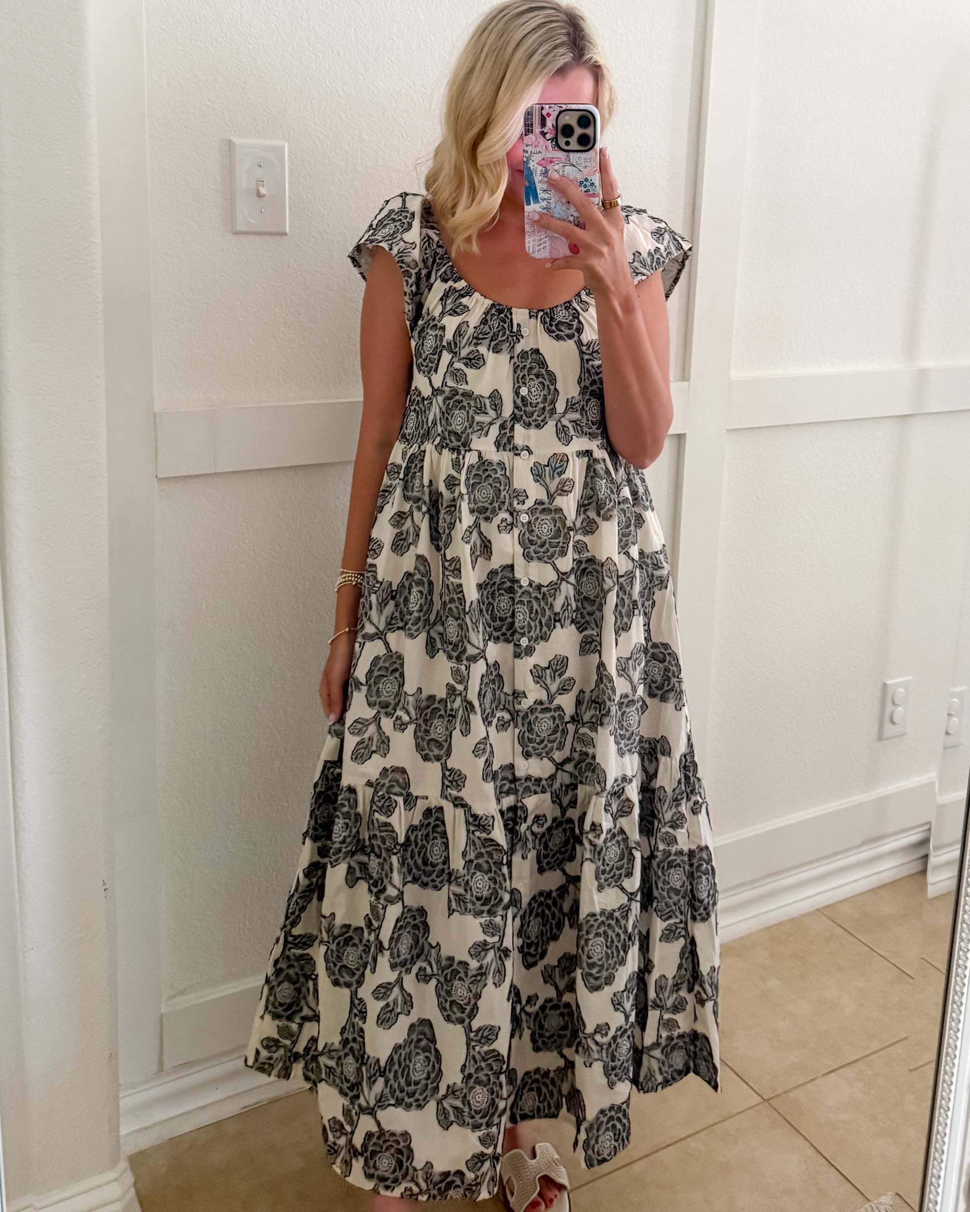 Effortless and chic, the Jackie Floral Button Up Dress is the versatile piece your closet has been waiting for. This cream midi dress features delicate black embroidered florals that add just the right touch of charm and sophistication. Designed with functional buttons down the front, fully lined for comfort, and—yes—pockets for everyday ease.